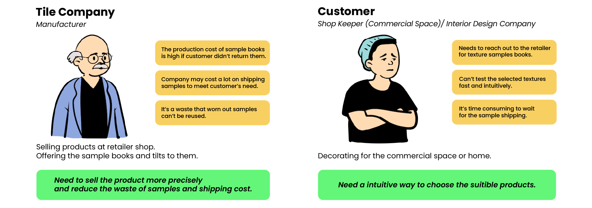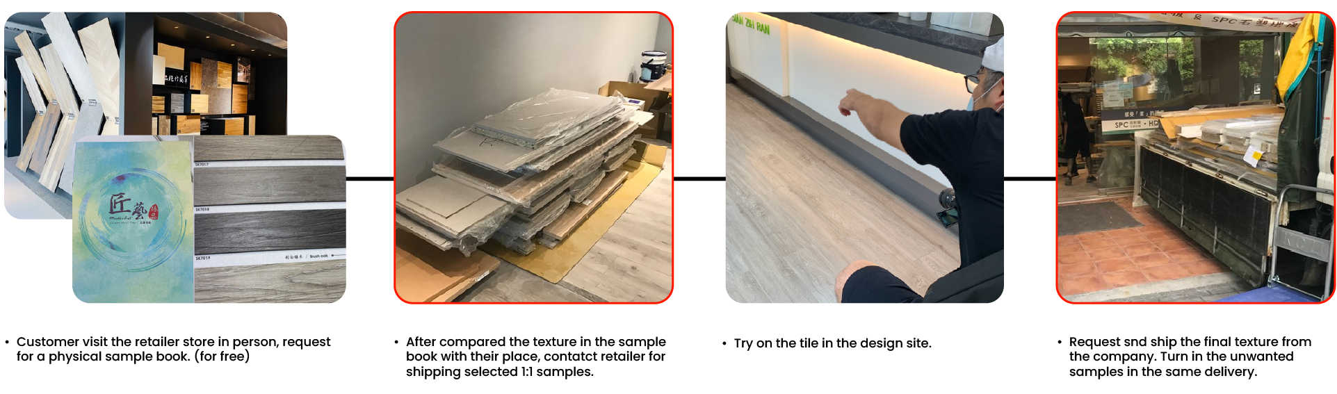 The main problem for both the company and customer is the process of testing the chosen samples in their designated space. It takes time to ship the samples to sites and return the unwanted ones.