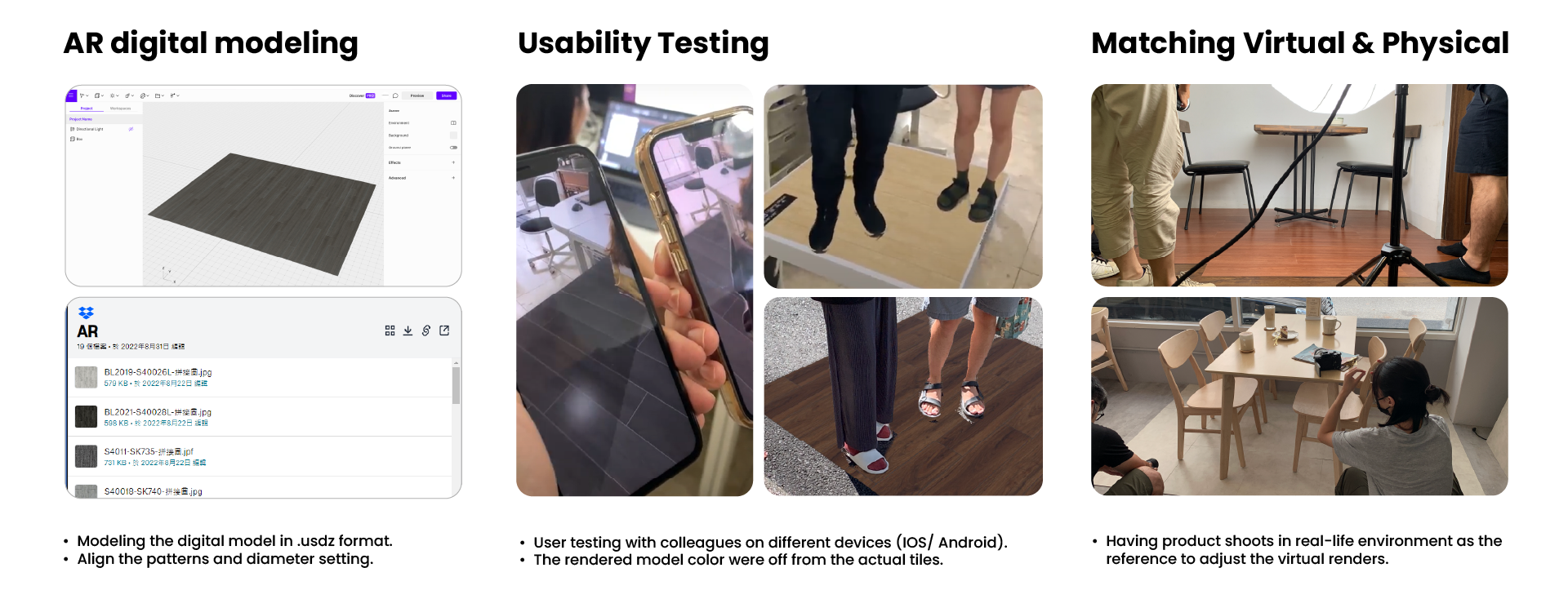 To tackle this, the design team conducted product photography in real commercial settings, ensuring digital renders match actual lighting for accurate AR previews.